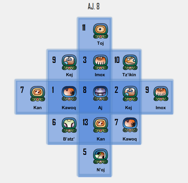 EL AJ NOS HACE VER EL HORIZONTE HACIA DONDE PODEMOS IR , POR OTRA PARTE SI NO ESTAMOS EN NUESTRO CENTRO, NOS DISPONE A QUE NECESITEMOS COMPRENSIÓN,CON INESTABILIDAD EMOCIONAL , ENOJADOS, OBSESIVOS E INDIFERENTES ANTE MUCHAS SITUACIONES, INCLUSO QUE NOS CERREMOS PARA EVITAR QUE LA SOCIEDAD ACTUAL NOS HAGA DAÑO. EL AJ, SE ASOCIA CON JUVENTUD, CON NIÑOS, CON LO NUEVO, CON EL FUTURO. CONQUISTAR EL FUTURO, TOMAR ESTRATEGIAS PARA TODO LO QUE VA A VENIR. EL NAWAL º 8 ES ENERGÍA DE CRECIMIENTO, DE NUTRICIÓN, DE FESTEJO, POR HABER LOGRADO LO QUE TANTO ANHELÁBAMOS. EL 8 AJ, ES CRECIMIENTO DE NUESTRA CAPACIDAD DE RENOVACIÓN CON MIRADA A FUTURO, PERO TAMBIÉN PUEDE MANIFESTARSE COMO NUESTRA INESTABILIDAD EMOCIONAL EN CRECIMIENTO,DÍA BUENO PARA LOS ESTUDIOSOS, INVESTIGADORES, LECTORES, BUSCADORES DE INFORMACIÓN, MENSAJEROS DEL CIELO.PARA GENTE FUTURISTA Y INNOVADORA