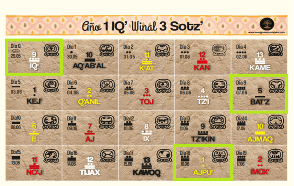 1 SOTZ´– 10 AQ´AB´AL- AK´B´AL- 30/05/25 LAJUJ AQ´AB´AL-LAHUN AK´B´AL – MATRIZ NUMEROLOGICA 10-3 ENERGÍA NEGRA- OESTE – TRECENA DE I´X Nº 2 DÍA 23 del CHOLQ´IJ – NOVENA de IQ` desde el 29/05/25 al 06/06/25 LUNA – SEÑOR DE LA NOCHE G7