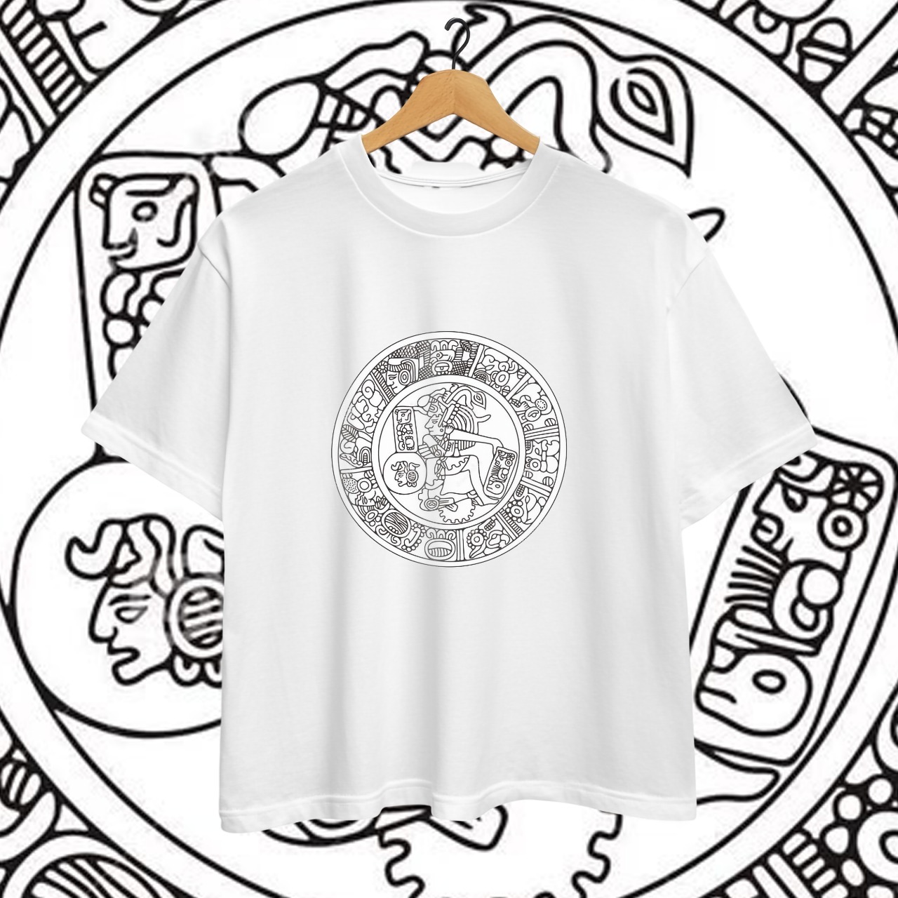 REMERA SPUM CON CALENDARIO MAYA ORIGINARIO ESTAMPADO EN NEGRO